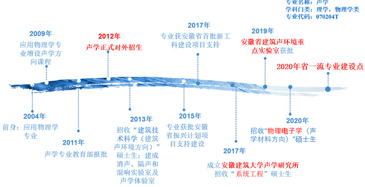 beats365官方唯一声学专业2012年首次面向全国招收本科生,2015年获批安徽省振兴计划项目支持建设,2017年获安徽省首批新工科建设项目支持,2019年获批安徽省建筑声环境重点实验室,2020年获安徽省一流专业建设点。