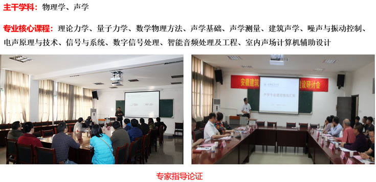 声学是物理学中最早深入研究,也是当前极为活跃的分支学科之一。目前,声学与众多理学、工学学科及艺术领域交叉融合,已形成众多独立的声学分支。beats365官方唯一声学专业是安徽省一流专业,该专业紧密围绕学校“立足安徽、面向长三角、辐射全国、服务新型城镇化”的办学定位,以物理学一级学科为基础,面向生命健康、新材料、新能源和节能环保、高端装备制造、人工智能等重点产业与领域,开展环境噪声振动与控制、室内音质及电声系统设计高素质应用型专门人才培养,以满足建筑、机械、交通和环保等领域对建筑声学和电声学方面声学专门人才的需求,服务于国家、地方经济建设与社会、行业及新兴产业发展。