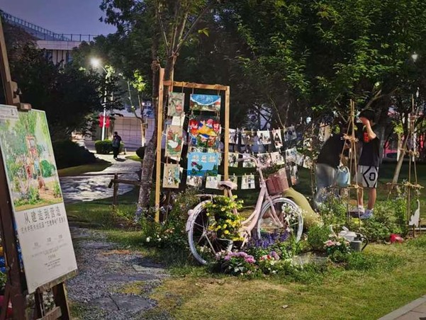 学院组建“徽匠园丁”社区花园营造团队,建设大学生劳动教育基地。该项目旨在以微花园为载体,采用文创思维建造以视觉美观为基础的花园景观,花园整体设计充分发挥设计创意学院的专业优势,回收校园旧物,创新性地将废弃自行车、轮胎、篮球等进行艺术性设计,凸显社区花园可持续与环保理念。在共创与共建阶段,通过邀请各学院、各年级、各专业的同学参与花园建设过程,使同学们体会到跨专业合作的收获。