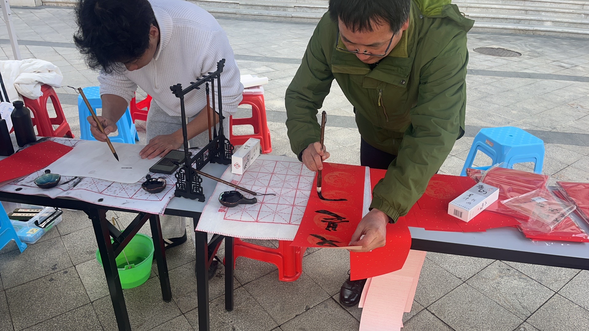 本网讯 岁末将至,年味渐浓。为传承中华优秀传统文化,厚植校园文化底蕴,营造喜庆祥和的节日氛围,1月9日,电信学院举办“翰墨写春·联贺新岁”写楹联送祝福活动。学院师生齐聚一堂,以笔寄情、以墨抒怀,在笔墨飘香中感受传统文化的魅力,共迎新春佳节。