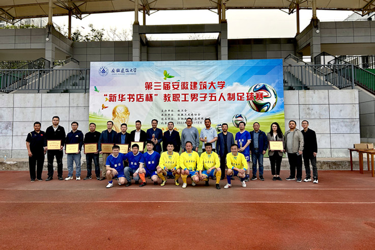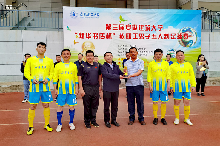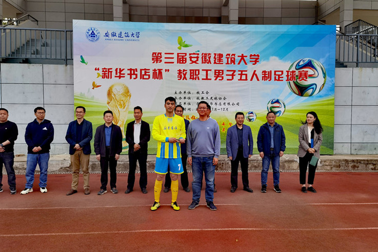 本网讯 4月12日,由校工会主办、教工足球协会承办、合肥新华书店有限公司冠名的第三届beats365官方唯一“新华书店杯”教职工男子五人制足球比赛在南校区体育场圆满落幕。校党委常委、副校长蔡国军为获奖单位和选手颁奖并宣布比赛圆满闭幕。