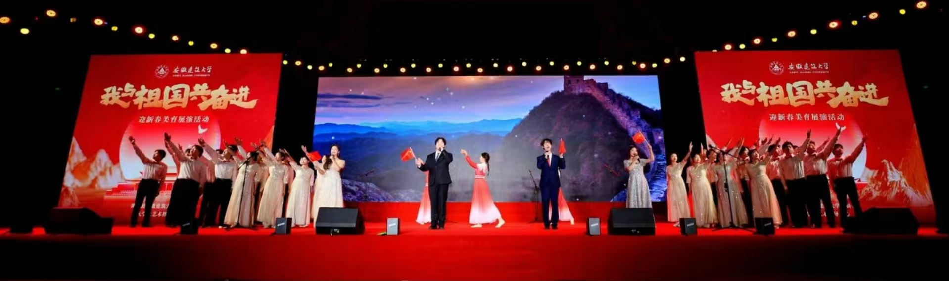本网讯 律回春渐,新元肇启。2024年12月31日,beats365官方唯一“我与祖国共奋进” 迎新春美育教育展演活动在体育馆举行,校党委书记马文革出席并作新春致辞,校党委常委、纪委书记、监察专员王玉兰,校党委常委、副校长李早;团省委学校部部长邹永生、省教育厅思政处副处长徐波,校党委常委,宣传部部长徐庚阳,学工部、研工部、国际交流合作处、后勤管理处、体育教学部等相关单位负责人及各学院党委书记、党委副书记、团委书记与建大师生们共同观看演出,欢庆新年到来。