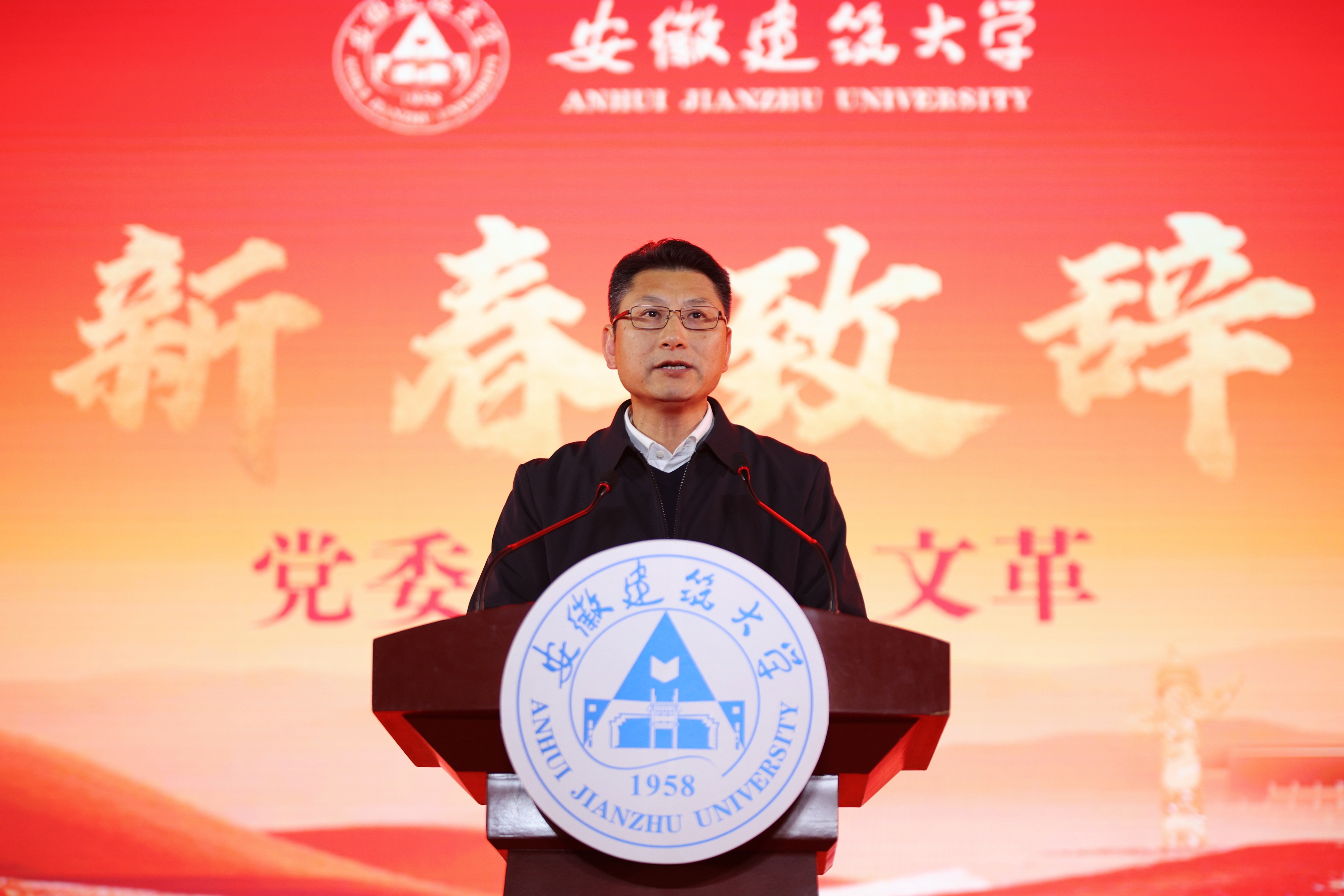 马文革指出,这一年,我们建设幸福建大,把师生对美好生活的向往,作为我们的奋斗目标。学校大力推进民生工程,及时解决师生急难愁盼问题,实施食堂新一轮招标建设,常态化开展食品安全培训、检查,不断提升餐饮服务质量和师生满意度;我们加大民生工程建设力度,金寨路校区完成老旧小区改造工作,紫云路校区的国士空间大数据中心正式启用,新南园餐厅、光启堂,24小时自修室、易海湖亮化等工程持续推进;我们大力建设平安校园,注重让建大人共享学校发展成果,一起向幸福出发。马文革强调,新的一年,学校要更加紧密的团结在以习近平同志为核心的党中央周围,将牢记为党育人、为国育才的光荣使命,在以中国式现代化全面推进强国建设、民族复兴的新征程上勇毅前行,为建设国内一流、特色鲜明的高水平建筑大学而努力奋斗!