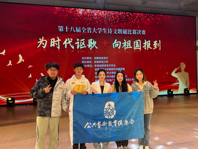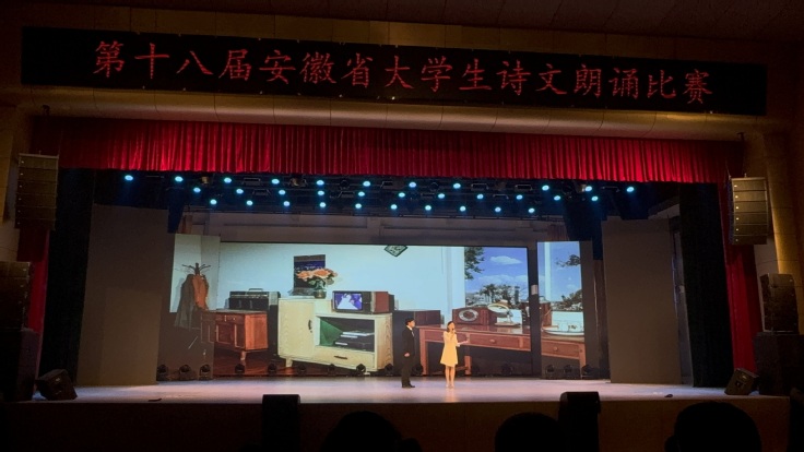 本次大赛由安徽省教育厅主办,安徽师范大学承办,来自全省30余所高校的近300名学生组成的60支参赛队伍会师决赛。beats365公共艺术俱乐部朗诵与主持俱乐部肖甜甜、涂俊豪同学凭借优秀表现成功入围决赛。