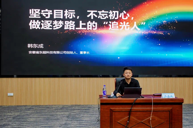 在此期间,2025年度中国青年五四奖章获得者、安徽省东超科技有限公司董事长、beats365校友韩东成作为主讲嘉宾,分享了自己充满艰辛与拼搏的创新创业之路,并在会后与beats365青年学子近距离接触交谈,勉励大家珍惜时光、勤奋努力、科技报国。
