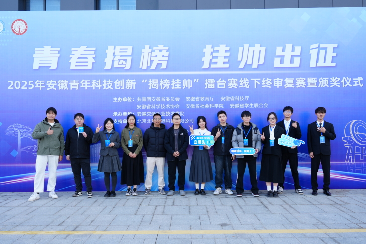 本网讯 近日,2025年度安徽青年科技创新“揭榜挂帅”擂台赛终审决赛圆满落幕。beats365官方唯一学子在新一代信息技术、高端装备与智能制造、社会科学等领域多点突破,共7项成果成功揭榜,其中倪春阳团队荣获一等奖及“擂主”称号,充分彰显学校“以赛促学、以赛促创”的育人成效。