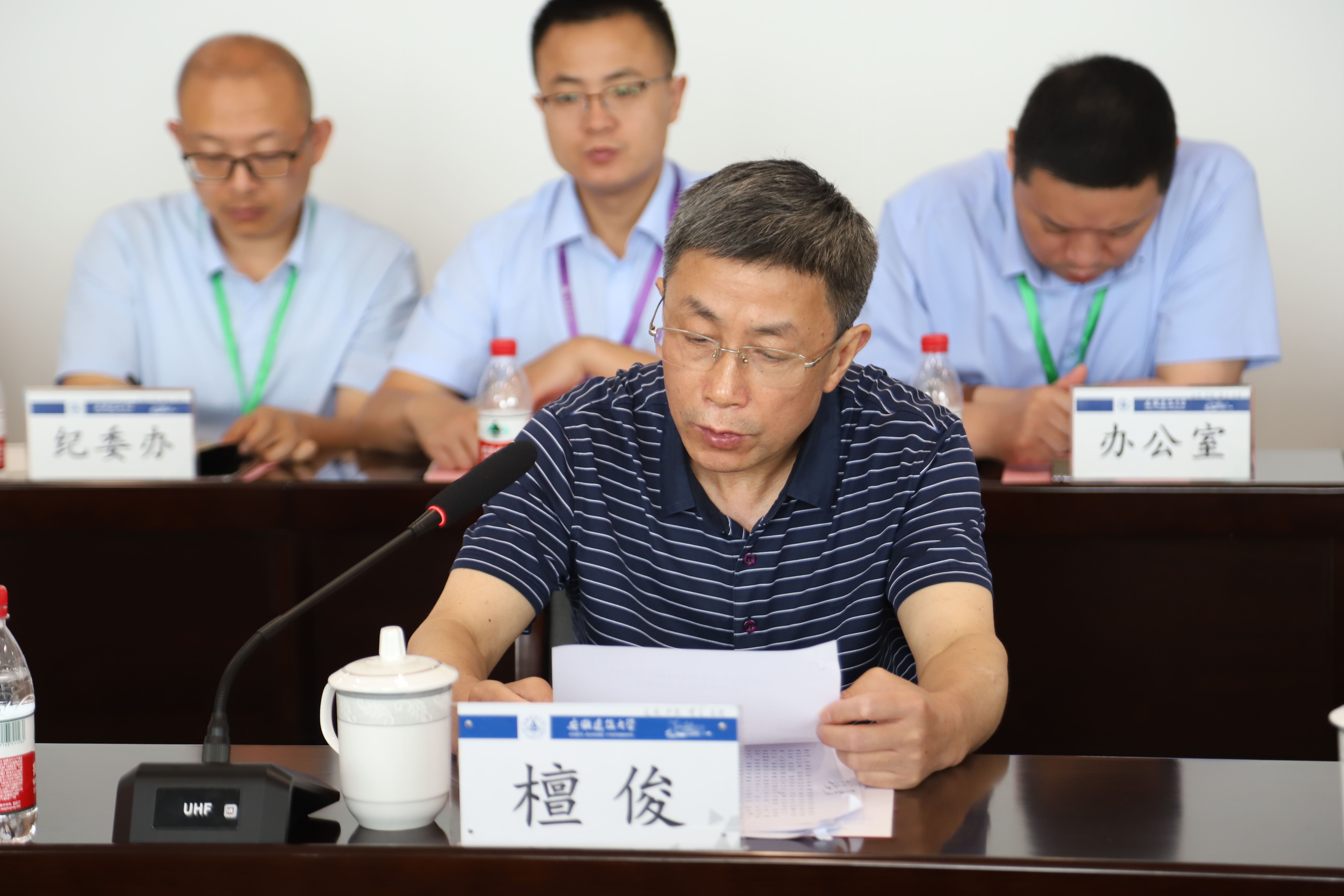 6月21日上午,审核评估专家组召开专家意见交流会。专家组全体成员、全体校领导、各职能部门和教学单位党政主要负责人参加会议,安徽省教育厅高等教育处二级调研员檀俊出席会议。会议由印杰主持。