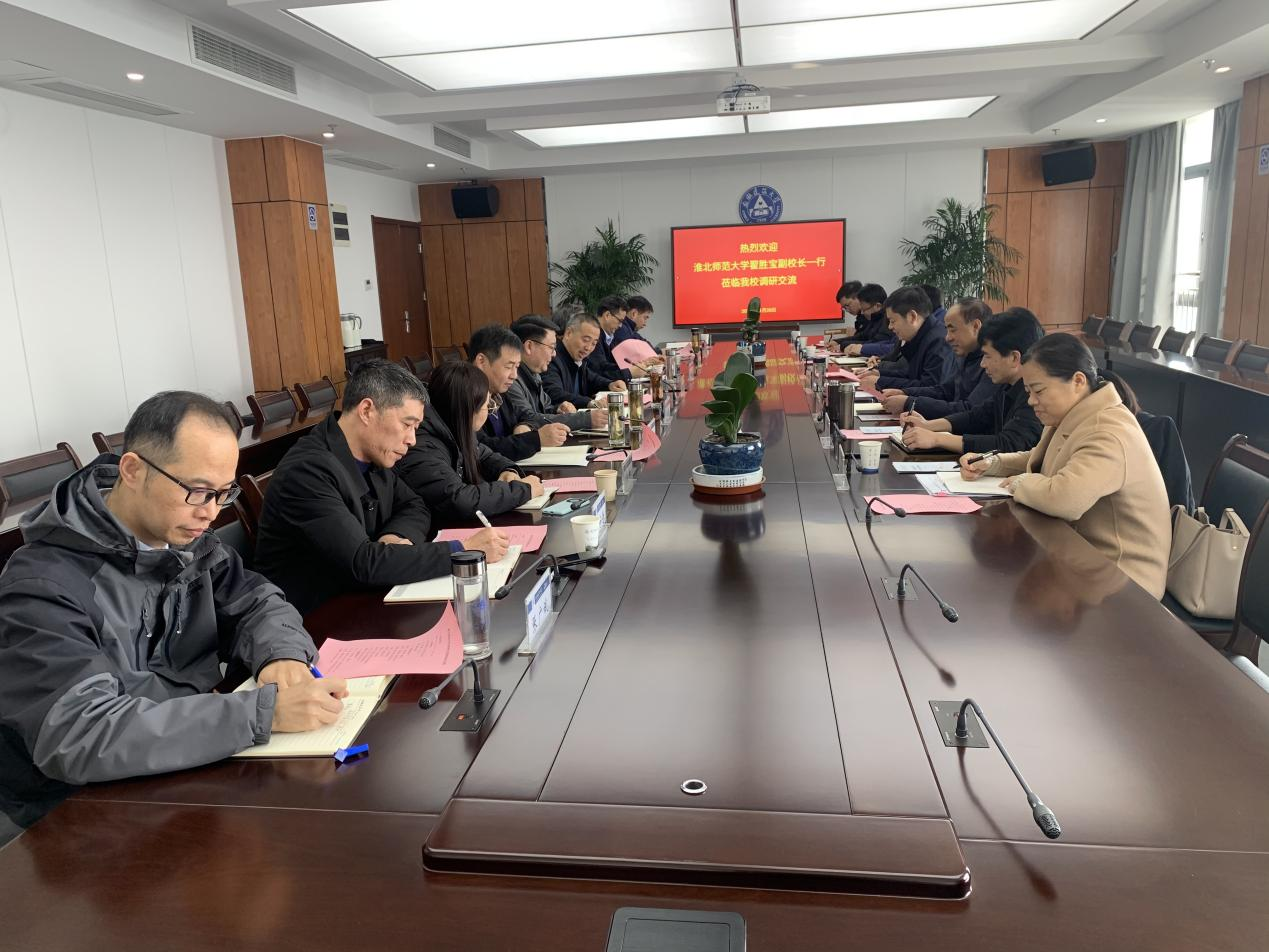 本网讯 11月28日,淮北师范大学党委常委、副校长翟胜宝一行9人来校调研交流。校党委常委、副校长闵杰,学生部、人事处、教务处、教师发展中心、信网中心、材料与化学工程学院、经济与管理学院等单位负责人参加会议,会议由闵杰主持。