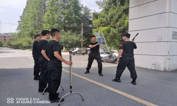 本网讯 6月7日, 北校区开展反恐防暴技能专项培训及演练,旨在为进一步加强校园反恐防暴工作,不断提高校园安保人员的应急能力。此次培训由神之盾保安公司抽调特训小分队担任培训及演练的任务。