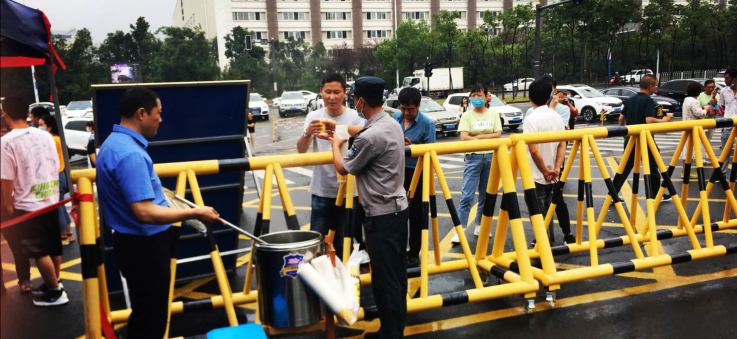 为了提升管理水平,保卫处积极提供微笑服务,为行李较多和腿脚不便的同学安排巡逻车接送,迎新日恰逢大雨,保卫处还为家长分发姜汤用以驱寒。