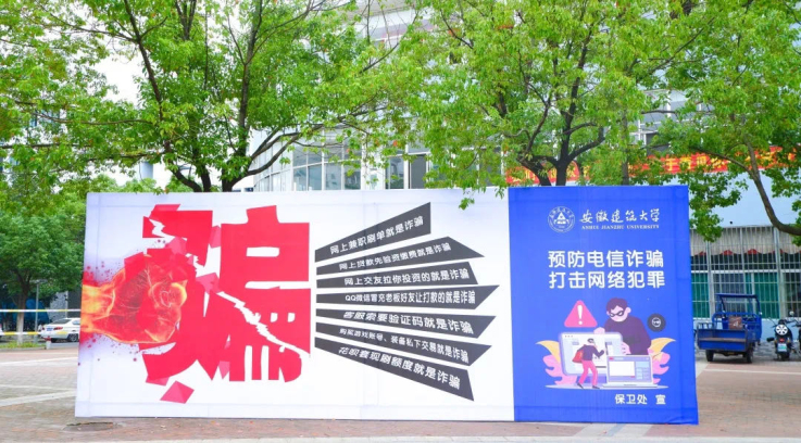 迎新期间,为提高新生安全防范意识,减少人身安全事故的发生,保卫处于校园醒目位置设立防诈骗宣传板,进行相关安全知识宣传,着重提到新生入学需要警惕的安全事件。
