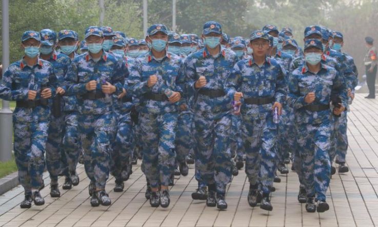 活动过程中保卫处通过设置烟雾弥漫场景,让所有新生在军训教官及新生辅导员的引导下,快速通过消防演习烟雾,撤离到安全场所,使新生亲身体验学习并掌握“弯腰、低姿、捂口鼻、看指示牌”等逃生要领和逃生技能。