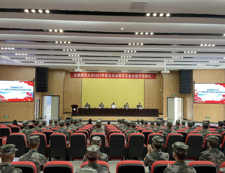 本网讯 2021年9月11日,2021级新生军训教官见面会暨开训典礼在南校区实验综合楼2搂报告厅举行。承训此次2021级新生军训的全体教官,学校人武部主要负责同志,各学院负责学生工作的书记参加会议。校党委常委、副校长张亚新出席会议并致辞。