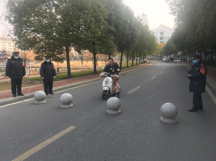 为预防人流高峰期发生安全隐患,保卫处安保人员在学生下课的时间段,在食堂等人流密集的路口摆放石墩限流限行,有效缓解了校园道路交通拥堵的情况。