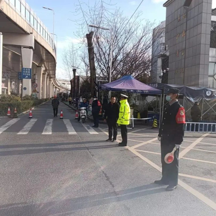 保卫处提前与属地公安、交警部门取得联系,在校门口组织人员配合交警进行疏导,引导送行家长车辆有序通行,确保交通井然有序,属地公安现场指导,并参与维持秩序。