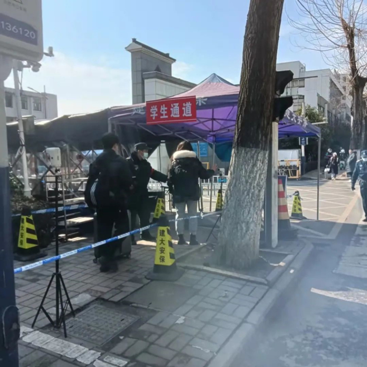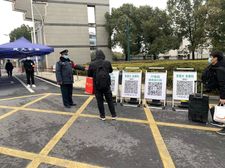 保卫处严格落实省教育厅及学校春季开学有关要求,逐一检查返校学生健康码、行程码、返校前48小时内核酸检测阴性报告,要求报到学生需佩戴口罩,按照地面蓝色标识间隔1米,测量体温并在生物识别通过后入校。(作者:胡明亮;审核:汪翼湧)