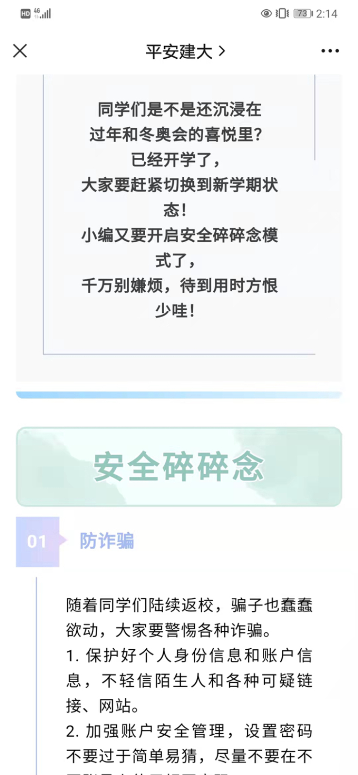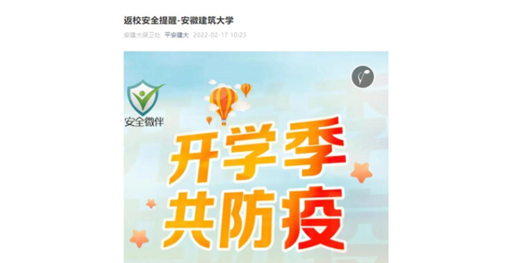 为做好返校防疫工作,保卫处相继在微信公众号与今日校园校园号发布返校安全提醒,提高学生安全意识。