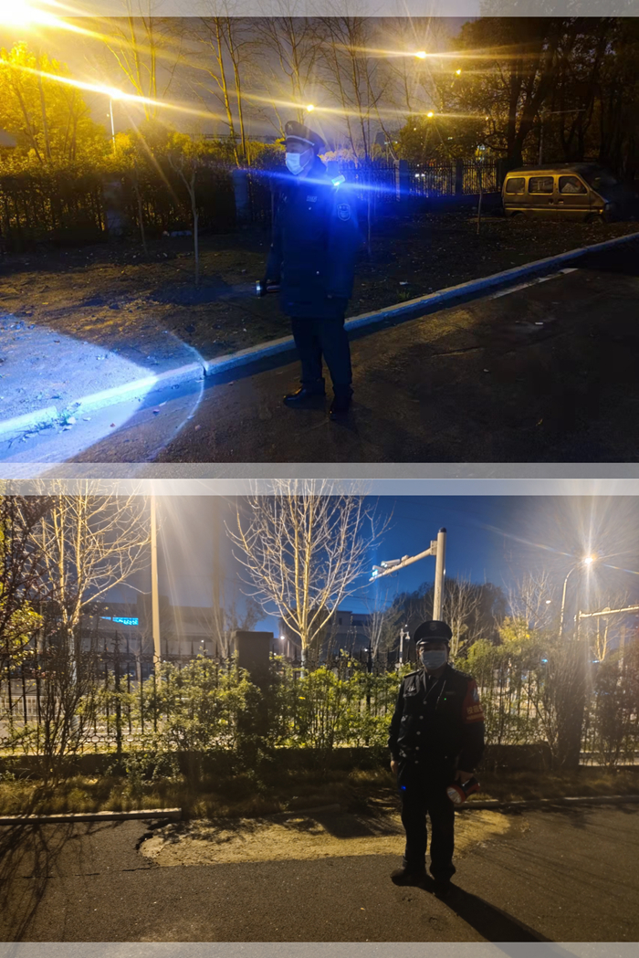 疫情防控期间,校园治安防护尤为重要,保卫处严格执行2个“24小时”工作要求:一是巡逻岗队员24小时校园昼夜巡逻,特别加大巡逻围墙频次,谨防违规出入校行为,发现异常情况立即处置;二是严格执行24小时值班制度,发现警情立即响应。同时,保卫处建立定时定岗报告机制,确保工作信息准确传达,工作要求第一时间落实;三是通过线上线下结合等多种形式开展校园安全宣传,把安全的种子种下去,让规则的意识立起来。
