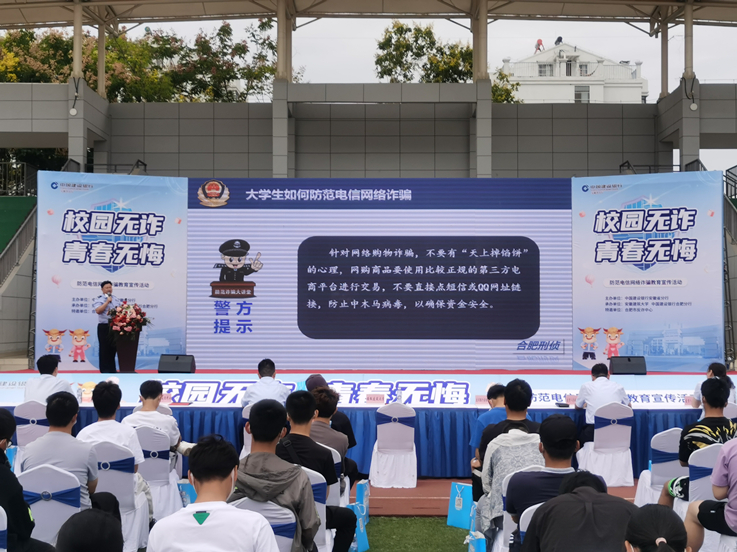 本网讯 为进一步提高学校师生防范电信诈骗意识,提升识骗防骗能力,强化学校与公安、金融机构等单位协同反诈机制,9月20日,学校联合中国建设银行、合肥市反诈中心举办“校园无诈青春无悔”防范电信网络诈骗宣讲活动。