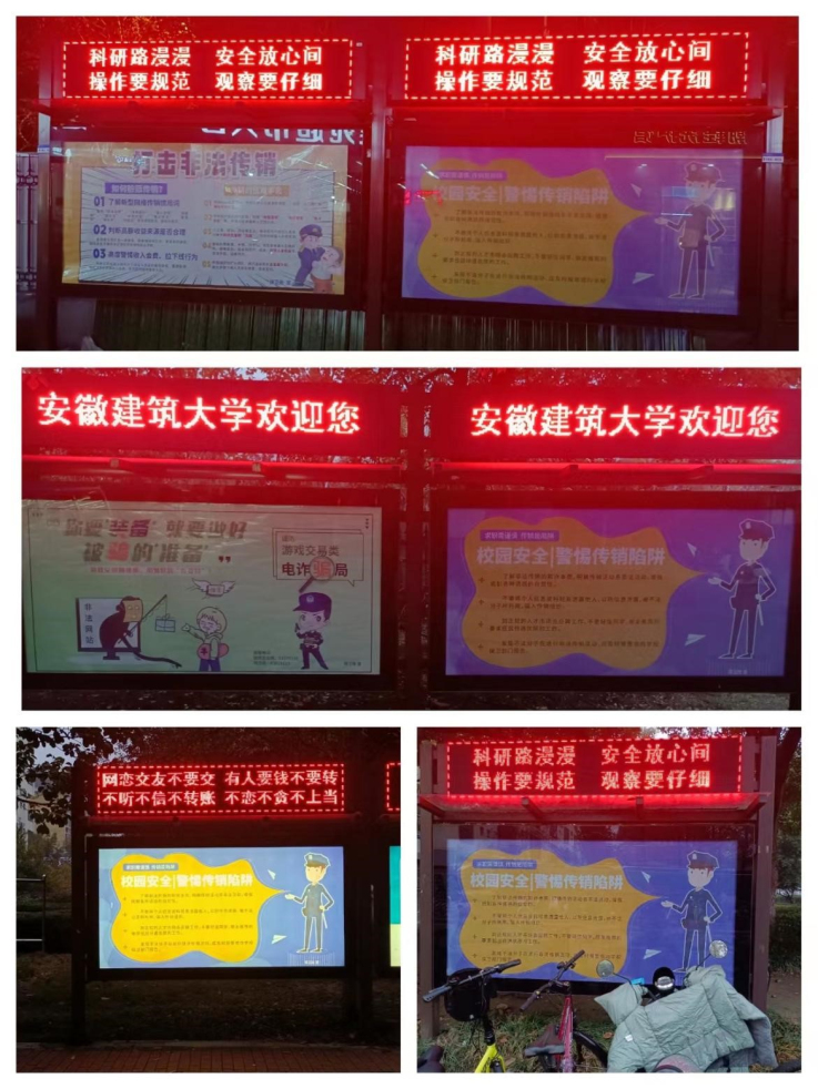 活动期间,保卫处通过线上“平安建大”微信公众号和线下宣传橱窗、展板等形式宣传防范和打击传销工作的重要性及如何识别传销。