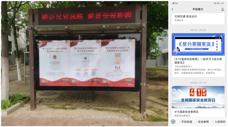 本网讯 2023年4月15日是第八个全民国家安全教育日,为深入宣传“贯彻总体国家安全观,增强全民国家安全意识和素养,夯实以新安全格局保障新发展格局的社会基础”活动主题,学校保卫处广泛开展线上线下教育宣传活动。