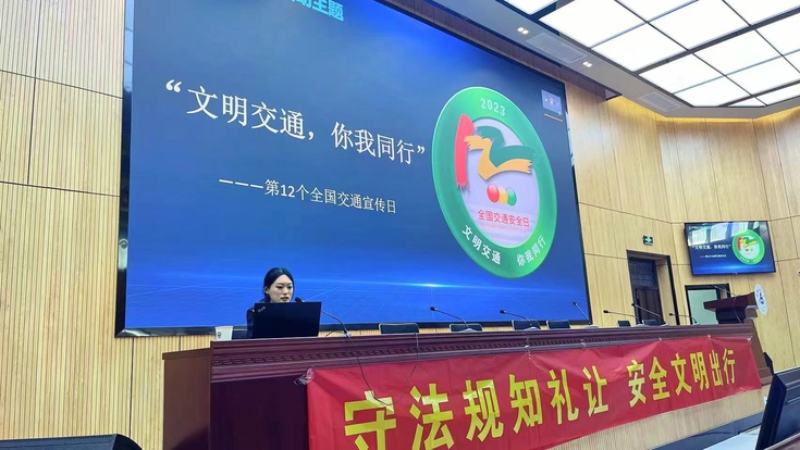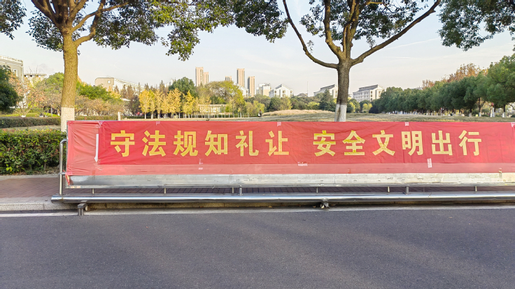 为营造师生员工学习关注交通安全,学校通过设置展板、条幅、微信公众号答题等线上线下结合的方式引导师生自觉提高交通安全素养。