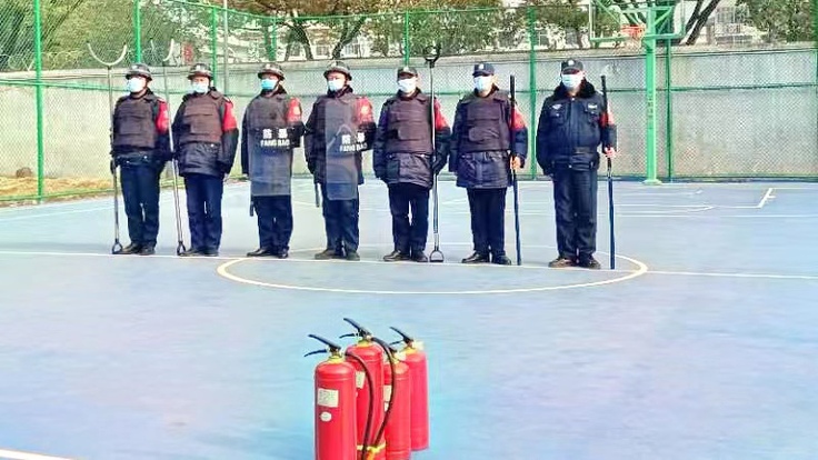 本网讯  为提高保安人员的应急处突能力和消防安全意识,保卫处寒假期间认真组织保安队进行假期各项管理规定学习。针对当前消防安全和应急处突重点,组织各岗位队员进行灭火器实操和消防水栓操作使用培训、对假期学校应急处突重点进行学习、对各类防暴器械进行培训以及对防暴应急处置流程进行学习规范,组织应急处突演练工作。
