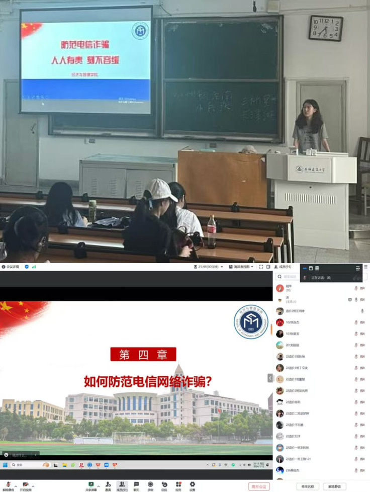 为引导师生紧绷防范之弦,远离诈骗之害,学校联合反诈中心和公安机关共同防范电信诈骗工作,为全校师生构筑起坚实的反诈屏障。学校召开警校包保联系座谈会议、合肥市经开区高校联席会议等,进一步推动警校双方深化合作,加强警校协同发展长效机制。学校主动协同公安机关,共同开展“防范诈骗校警合作 共建平安和谐校园”讲座,开学季举办“筑牢反诈意识,切莫孤注一掷”安全教育观影活动,普及反电诈知识,注意电诈陷阱,讲解电诈套路,推进反诈宣传入脑入心。学校联动警方做好应急处置工作,发挥防电诈预警平台作用,发现问题及时联系学校为民警务站民警,协同制止诈骗行为,降低诈骗案件的发生几率。学校加强与警方联系,强化案情警示教育,做到一案一分析、一案一通报、一案一警示,严肃处理违法违纪学生,做到警方参与发生一起教育一片,帮助师生避开电诈风险,保障生命财产安全。