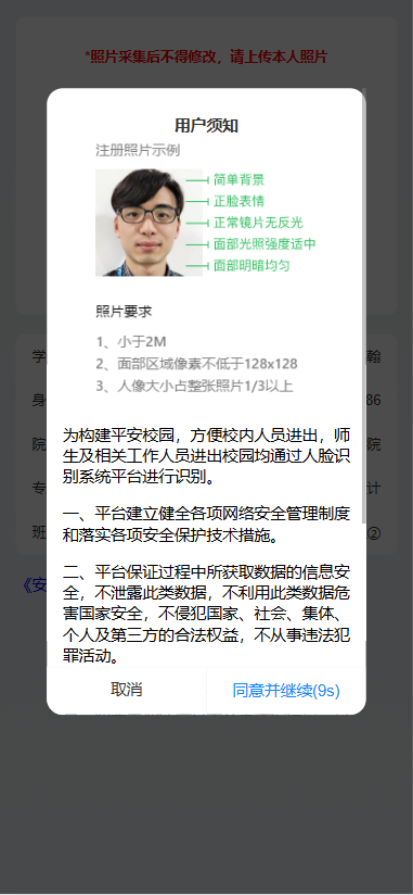 六、新生人像自主上传采集(入校必备)