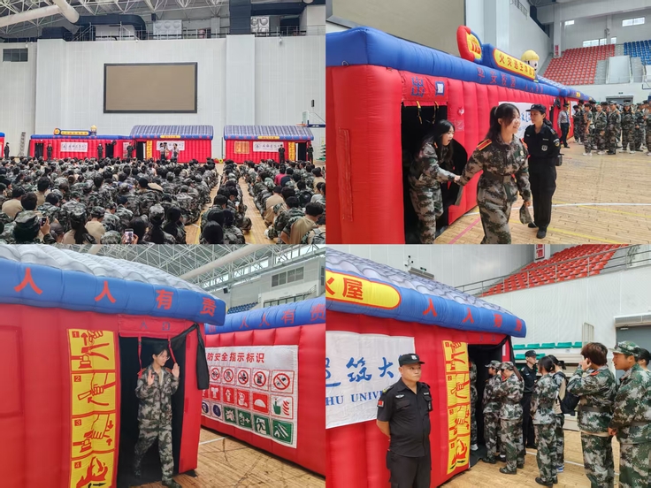 9月27日至28日,消防安全教育再升级。演练现场精心设置两个灭火器扑救火灾场景与一个烟气疏散场景,让新生在贴近真实的环境中实战练兵。在灭火器实操环节,新生们亲手拿起灭火器,按照“提、拔、握、压”的步骤扑灭模拟火点,熟练掌握初期火灾扑救技巧;在浓烟逃生场景中,新生们弯腰低姿、用湿毛巾捂住口鼻,沿着预设疏散路线快速撤离,切实掌握浓烟环境下的逃生方法。