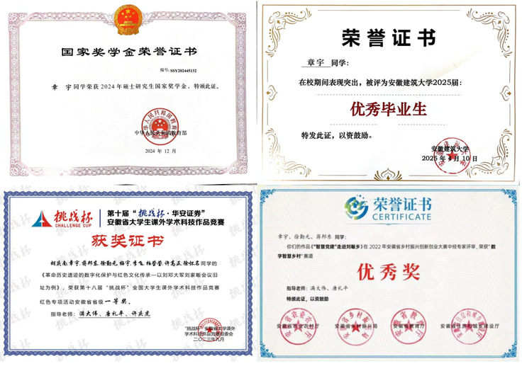 党支部围绕立德树人根本任务和创新创业人才培养目标,以学科竞赛为育人载体,将理想信念教育与合作共事、敢于创新、勇攀高峰等精神培育有机融入实践活动,把思政元素与“双创教育” 贯穿教书育人全过程。这种“课程思政”模式提升了学生的专业能力,增强了学生的社会责任感和家国情怀,形成了可复制、可借鉴的育人品牌。支部党员指导研究生在学术竞赛和科研创新中取得了优异成绩,2名研究生获国家奖学金,1名研究生获评2025届校级优秀毕业生,1名研究生获评2025届省级优秀毕业生。支部党员指导学生作品《革命历史遗迹的数字化保护与红色文化传承——以刘邓大军刘家畈会议旧址为例》荣获第十八届挑战杯全国大学生课外学术科技作品竞赛红色专项活动省级一等奖,作品《“智慧党建”走进刘畈乡》获安徽省乡村振兴创新创业大赛数字智慧乡村赛道优秀奖。这些成果的取得,得益于支部通过党建引领构建的“党建+人才培养”的工作机制。支部通过导师指导、学术论坛、创新创业训练等方式,激发学生的科研兴趣和创新潜能,形成了“党建引领、全员育人”的良好氛围。