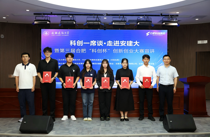 互动交流阶段,参会师生们就创新创业政策、参赛条件等话题进行,现场气氛热烈。此外,活动还举行了“合肥科创杯校园推荐官”授聘仪式,六名优秀学生获颁聘书。