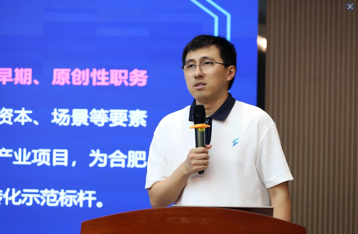 程润坦以《以科技创新引领推动产业创新》为题详细介绍合肥市“4+4+6”科技成果转化应用体系,并就省、市相关政策进行解读。