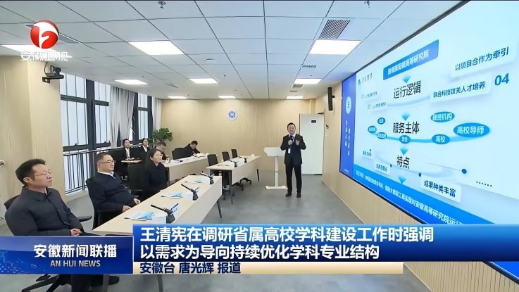 此外,平台建设亦获合肥市及省级相关部门关注支持。12月26日,省发改委一行赴教育部高等研究院融合发展创新研究中心调研,与学校相关负责人围绕平台协同、资源整合等议题简要交流,为后续深化政产学研合作夯实基础;合肥市同步持续关注教育部高等研究院融合发展创新研究中心建设进展,积极对接资源赋能平台高质量发展。