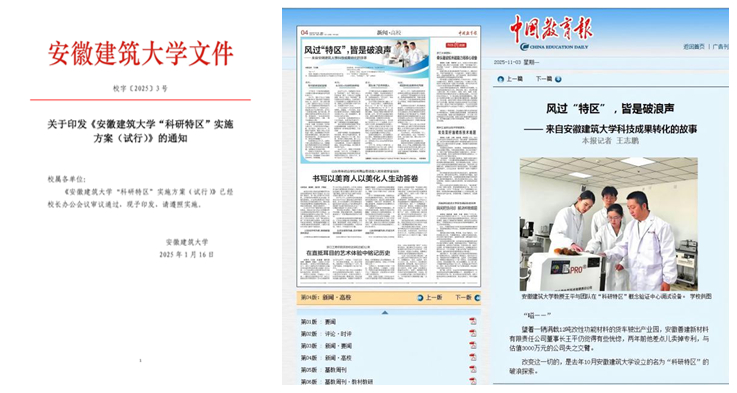 打造全省首个“科研特区”样板间,推动高价值成果产业化落地。学校赋权成果作价入股成立的首个科技型企业——安徽善建新材料有限责任公司,获《中国教育报》专访,相关成果获王清宪省长、任清华副省长高度认可;艺术学院张乐以37件著作权、8件实用新型作价300万元入股,成立安徽首个社科类知识产权赋权企业;钟新团队51项著作权作价600万成立安徽易海弘毅控股有限公司,形成可复制、可推广的转化路径。