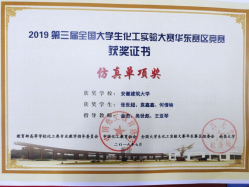 第三届全国大学生化工实验大赛(华东赛区) | 2019 | 中国化工教育协会 | 单项奖两项 |