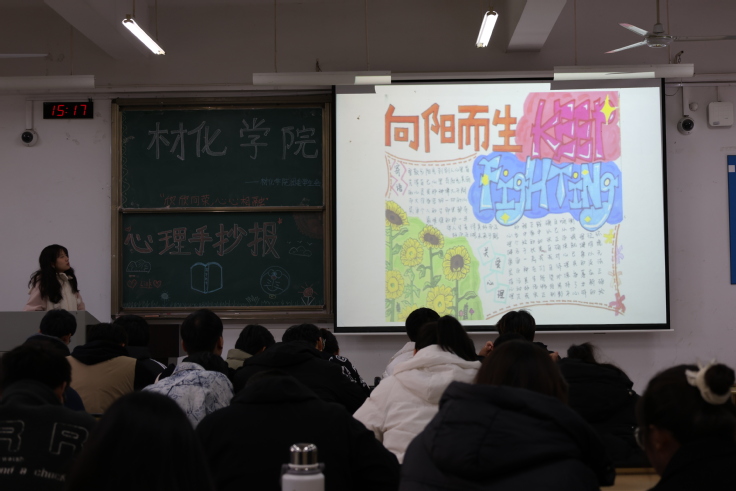 本网讯 为宣传普及心理健康知识,提升大学生的心理素质,培养大学生积极向上的心态,12月2日,材化学院团委学生会于逸夫楼5103举办“心心相融,欣欣向荣”心理手抄报活动。