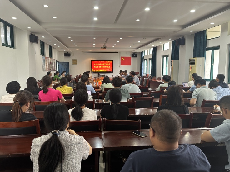 本网讯 为推进党纪学习教育走深走实,进一步推动党员干部学纪、知纪、明纪、守纪,6月19日,校党委副书记、校长黄显怀到材化学院给全体教职工党员讲党课解读《中国共产党纪律处分条例》,学院领导班子和全体教职工党员参加了党课学习,学院党委书记万德军主持专题党课。