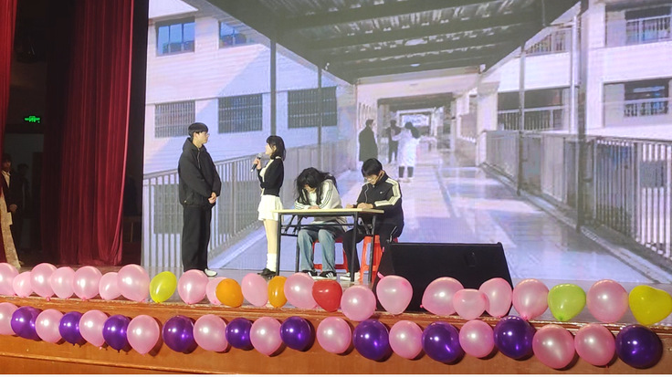 随后,一场视听盛宴正式上演。晚会节目丰富多彩,涵盖了歌曲、舞蹈、小品、朗诵、话剧等多种艺术形式,展现了材化学子多才多艺的一面。