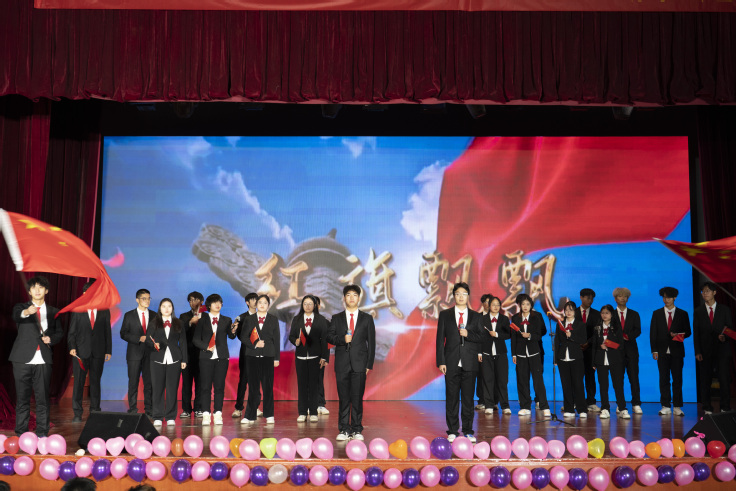 激昂的歌声,回望历史,大合唱《红旗飘飘》叙述着对祖国的热爱与祝福,也将此次晚会的落幕宣告。