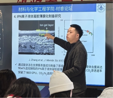 针对“为什么要读研”张劲辉老师结合自身从本科、销售员、硕士、工程师、海外博士到高校教师的多元成长历程及科研实践经验,引导同学们明确读研初心,并分享四条核心建议:一是做好当下以拓宽选择权;二是正视选择,接纳每个阶段的最优决策;三是勇于将想法付诸行动;四是珍惜当下,理性看待人生困境。同时,张劲辉老师结合自身科研经历介绍了离子液体凝胶分离膜材料的核心科学问题及研究成果,总结道:科研与人生的成功均需遵循 “找准目标—全力以赴—长期坚持” 的路径,学术研究正是在 “发现问题—解决问题” 的循环中持续推进。为同学们梳理了人生道路和学术道路的关键问题