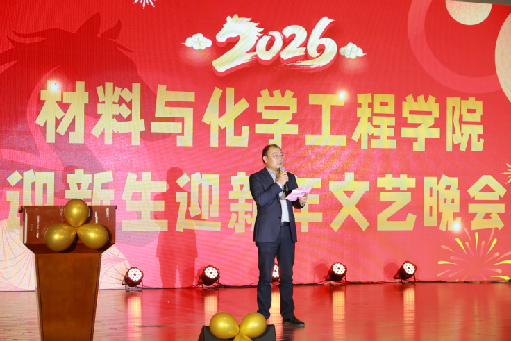 在悠扬的乐曲之中,晚会也拉开了序幕。材化学院党委书记孙长城为晚会致辞,他向同学们汇报了一年来学院在人才培养、学科建设等方面取得的成绩,勉励同学在新的一年里,继续锚定目标、驰而不息,他的殷切期望与温暖祝福,与本次晚会主题“骏马扬鞭”“乘梦启航”遥相呼应。