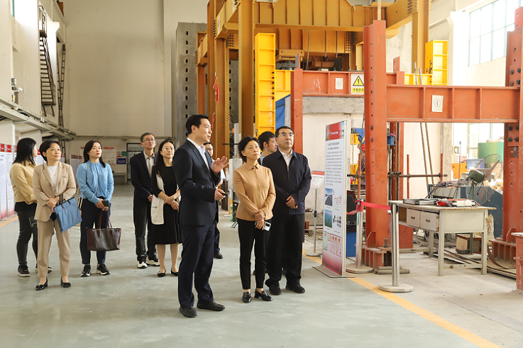 胡锡萍一行先后实地察看了建筑健康监测与灾害预防技术、硅砂资源利用等重点实验室及校园环境。