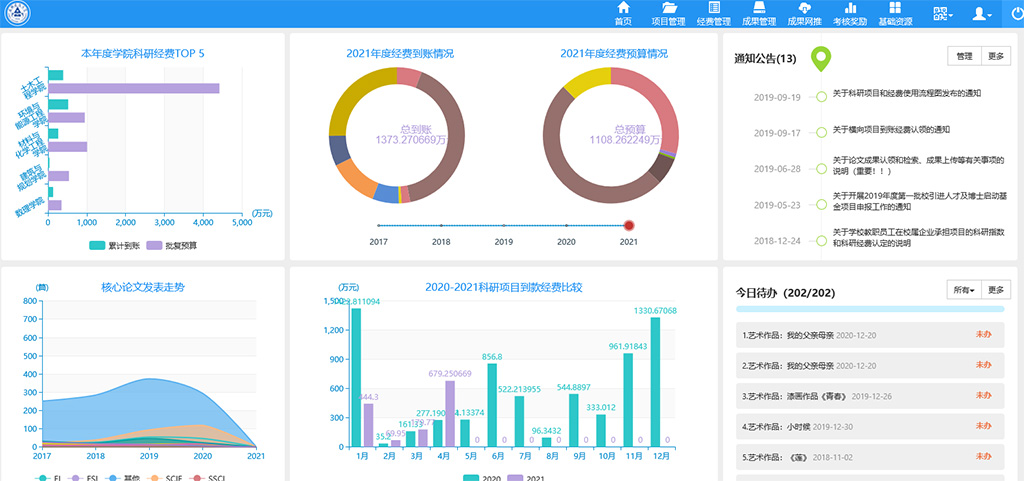二是机制创新推进学校科研管理体制实现新突破。“十三五”期间,学校奋力推进科技创新体系和创新能力建设,全面提升科技创新治理能力。通过认真废除科研管理文件12项,新立、修订《beats365官方唯一财政科研项目及经费管理办法》《beats365官方唯一科研平台建设与运行管理办法》(试行)等相关科研管理文件29项,2017年,学校上线科研管理信息系统,实现科研项目、科研成果、科研考核等科技管理工作的全流程信息化,为充分调动广大教师的科研工作积极性,挖掘科研潜力,提升科研水平提供了重要的技术手段和制度保障。