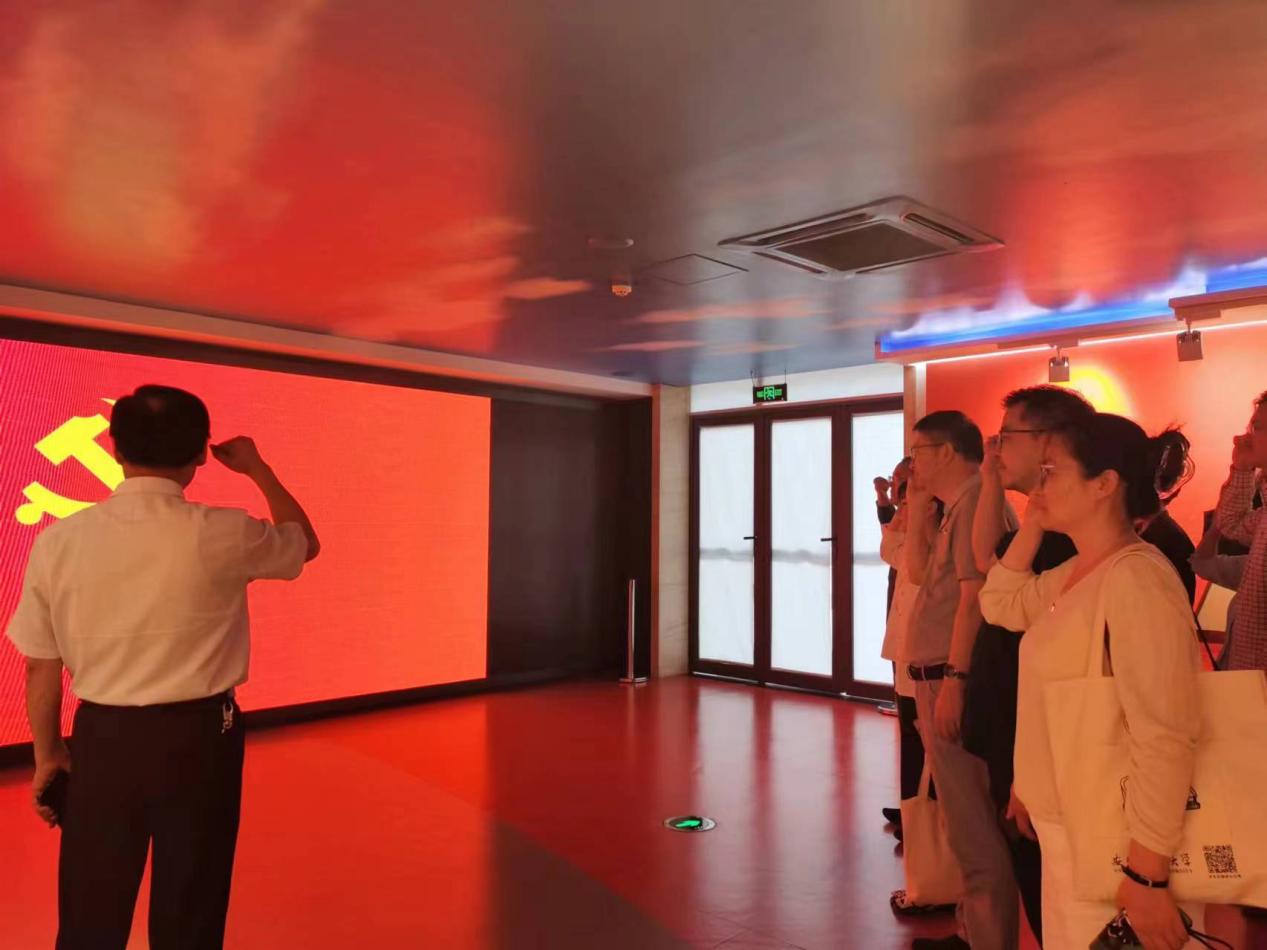 参观结束后,全体党员面向党旗,高举右拳,在产业党总支书记、产业管理处处长丁琨带领下,重温入党誓词,铿锵有力的宣誓声响彻大厅,大家深感,心中有信仰,肩上有担当,脚下有力量。