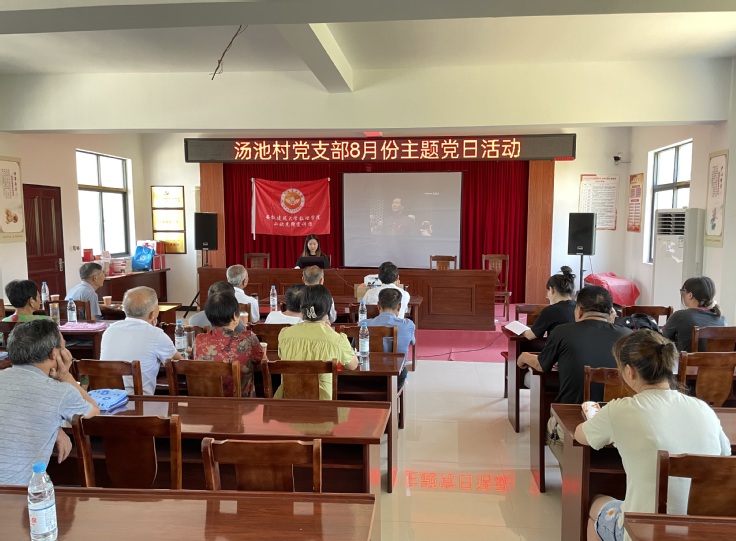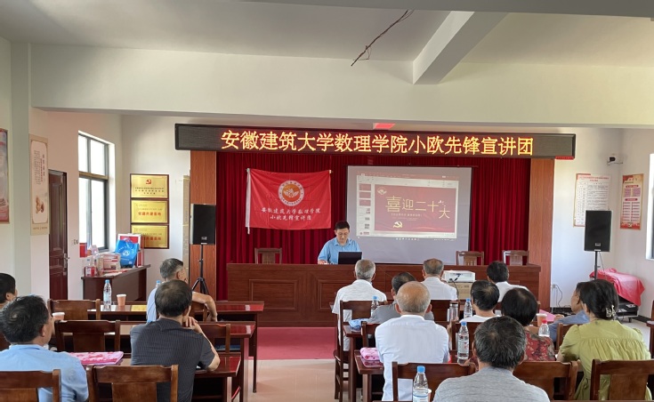 在签订协议后,双方开展首次党史教育实践宣讲活动,数理学院学生第一党支部“小欧”先锋宣讲团成员水天柱老师围绕中共一大召开背景、中共一大背后的故事、我们的传家宝——红船精神进行宣讲。激励广大党员要学习和弘扬“红船精神”,赓续共产党人精神血脉,让“红船精神”绽放新的时代光芒。学生党员戚如如、章婷分别介绍了中共一大代表人物,因为相同的信仰,他们走到了中国共产党这个原点,又因为不同的信仰他们从相同的起点走向了不同的归宿。宣讲会后学生党员与汤池村党支部的老党员们进行交流,了解他们的入党故事。