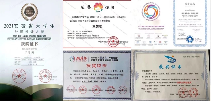 情系榜样,感悟榜样。党支部持续强化对学生党员的教育引导,充分发挥学生党员在广大同学中的示范引领作用。近两年,支部党员在专业学习、学科竞赛、就业考研等各条赛道上均取得了优异成绩。符文卓获第四届“我心中的思政课”全国高校大学生微电影展示活动优秀奖,第六届安徽省“互联网+“大学生创新创业大赛中荣获高教主赛道金奖;沈越、刘美分别考取合肥工业大学、西安科技大学研究生,黄艺雯荣获第八届安徽省“互联网+”大学生创新创业大赛金奖、2022年度本科生国家奖学金;吴慧子、胡晶晶、杨怡雯等同学分别在第十届“挑战杯·华安证券”安徽省大学生创业计划竞赛、安徽省大学生环境设计大赛室内空间设计比赛、2021国际大学生建筑设计与数字建模竞赛建筑与场景数字建模比赛等各类赛事斩获奖项。
