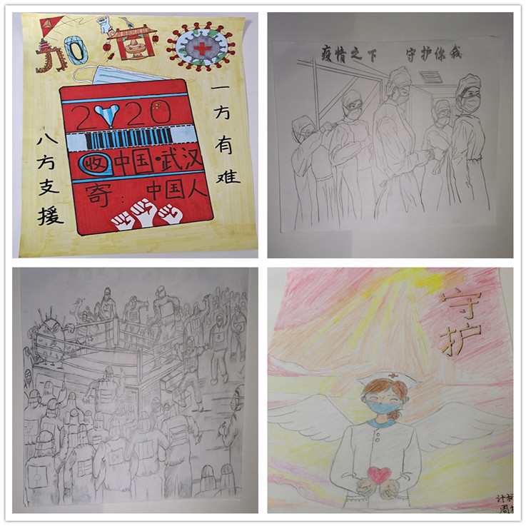 同学们用线条与情感碰撞,描绘出栩栩如生的抗疫画像:强大祖国支撑起一个坚硬的后盾,全国上下勇敢地与病毒抗争,一线救护者从死神手中挽救一个又一个生命。这些作品不仅仅是一幅漫画,更传达着创作者深深的敬意与美好的期望。