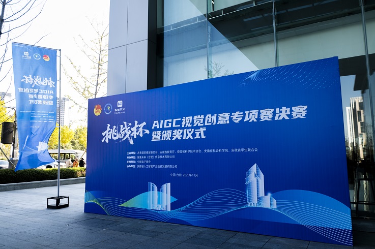 本次专项赛以深入学习贯彻习近平新时代中国特色社会主义思想为指导,紧密围绕安徽省"十四五"发展规划和2035年远景目标纲要,旨在推动视觉生成式AI技术在广告营销、工业设计、文旅创新等领域的创新应用,助力"AI+创意设计"赋能实体经济。竞赛自2025年6月启动以来,历时四个月,经过激烈角逐,最终由电子与信息工程学院24网络工程专业吴昭夕、24物联网工程专业黄晨阳、22物联网工程专业王佳杰、22计算机科学与技术专业赵浩然组成的参赛团队,通过精彩的答辩、作品现场演示和评审专家质询等环节,展现了卓越的创新思维和技术实力,赢得评审专家一致认可,获得特等奖。