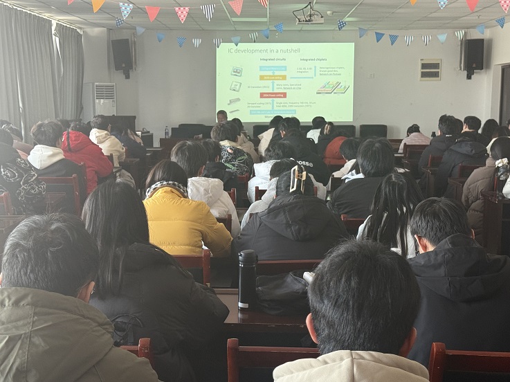 本网讯 12月26日下午,电信学院邀请了香港科技大学(广州)鲁中海教授在紫云路校区徽风楼1106会议室,作主题为“集成电路之未来”的前沿学术报告。电信学院和机电学院相关教师、研究生和本科生100余人参加了报告会。报告会由学院分管院长谢陈磊主持。